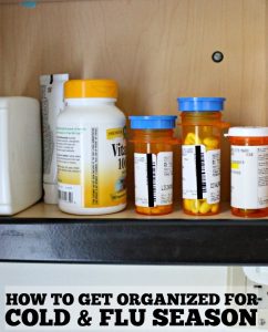 Now is the time to get organized for cold and flu season. Since my husband is disabled, he has a reduced immune system. Staying healthy during cold and flu season is even more important to us because of this reason. An illness that I can fight off or that lasts me only a day or two can last him a week or more or turn into something more serious.