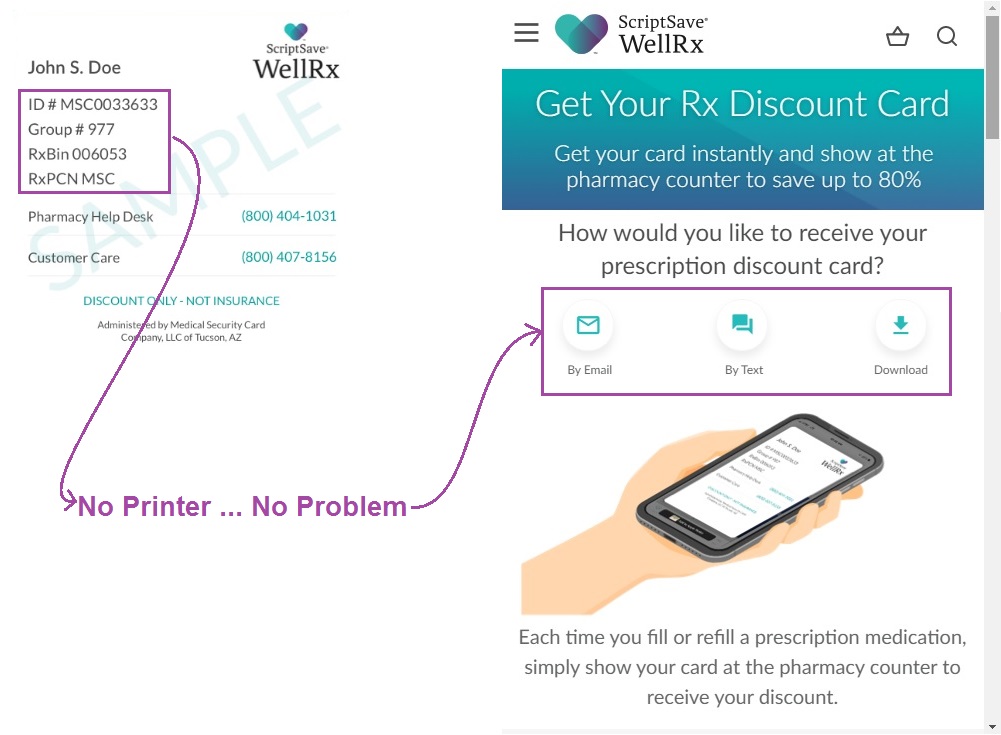 - If you don’t want the app, but you do want a digital card for your phone, you can visit the ScriptSave WellRx website and select the “Download Card” option from the “Get Savings Card” page.